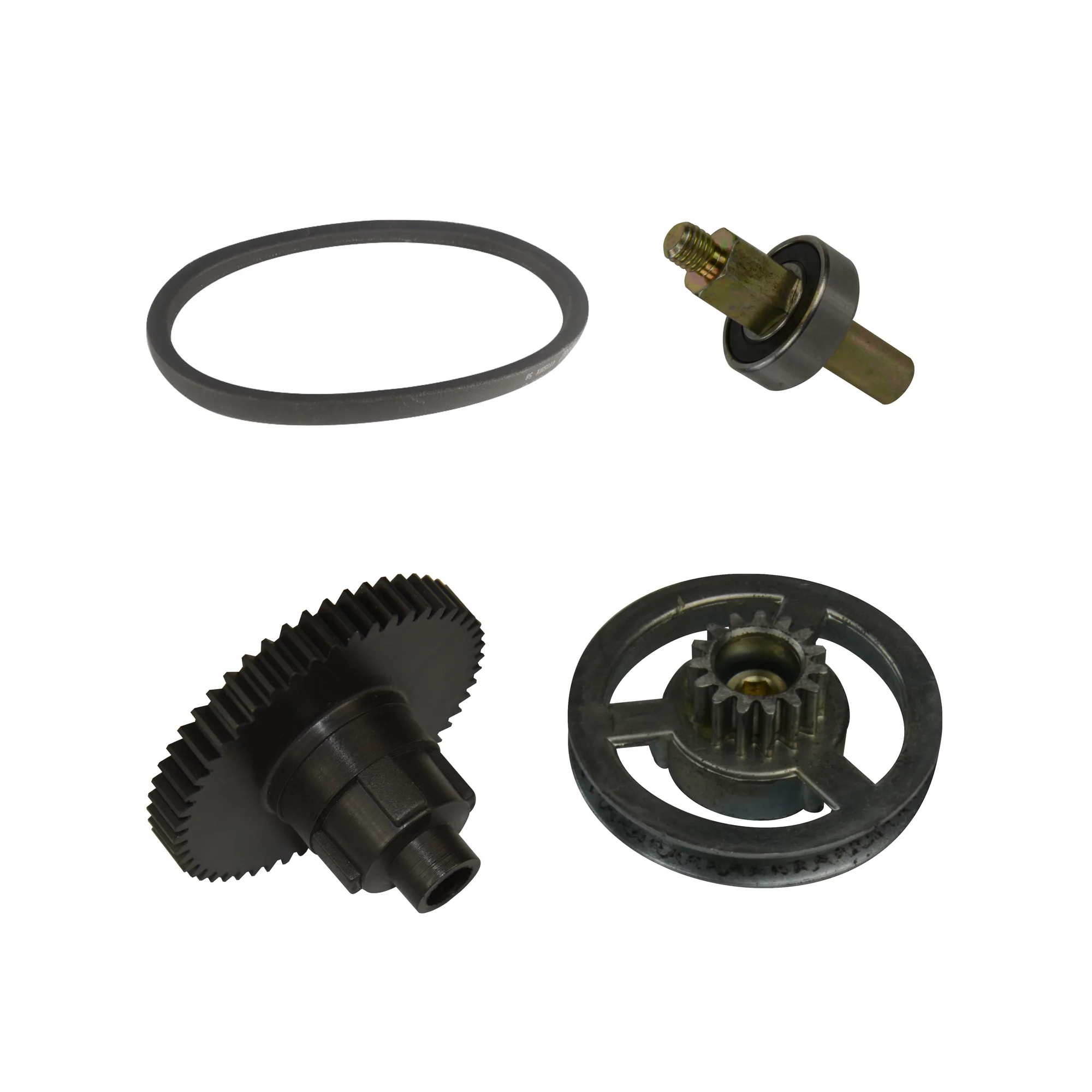 - Este kit contiene 1 engranaje de aluminio con cojinete, 1 cojinete de rodillos con conjunto de vástago, 1 engranaje negro y 1 correa de Kevlar para máquina pequeña o basculante.