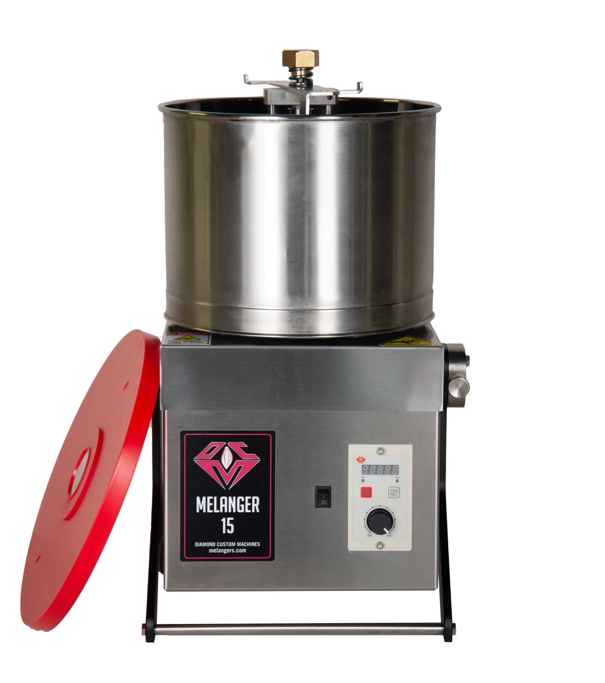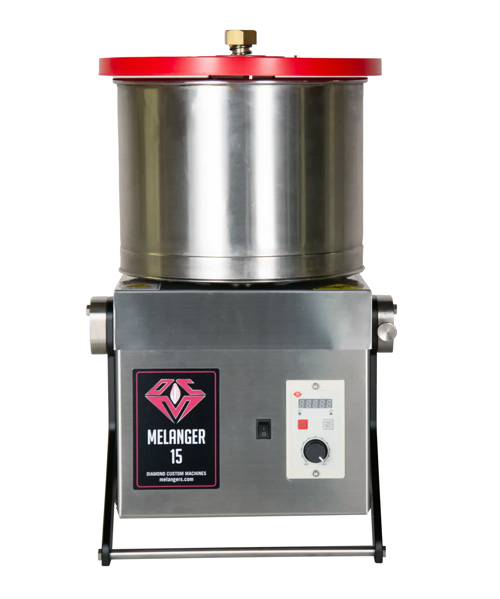 Construido con los más altos estándares de calidad y fabricado en EE.UU., el DCM Melanger 15 está hecho a medida y cuenta con piedras de granito totalmente naturales de alta calidad que refinan el tamaño de las partículas hasta menos de 20 micras para obtener un resultado perfectamente liso. El cuerpo de la máquina está fabricado en acero inoxidable de grado alimentario para una máxima durabilidad y facilidad de limpieza. El pomo de bloqueo superior de latón macizo no sólo es resistente, sino que permite un control preciso de la presión de las piedras de los rodillos.